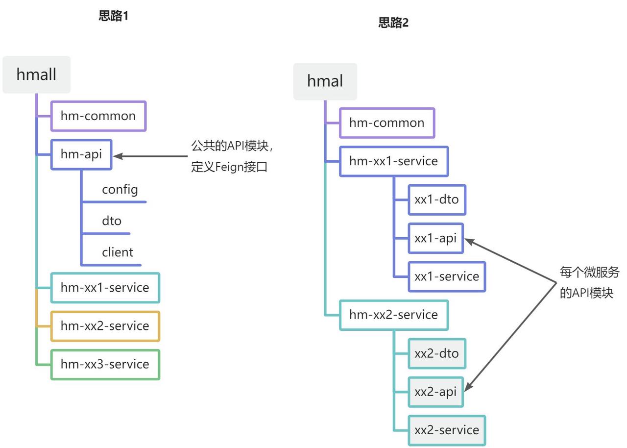 现在,任何微服务要调用item-service中的接口,只需要引入hm-api模块依赖即可,无需自己编写Feign客户端了。